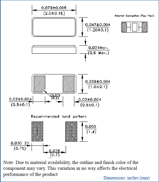小型尺寸2.0x1.2x0.6mm,理想的高密度電路板