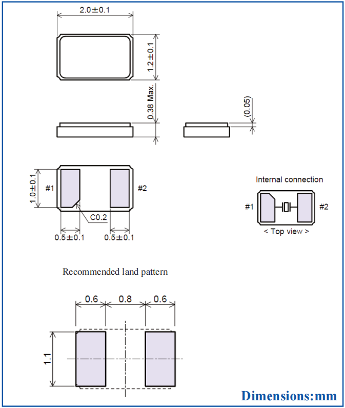 ABS06L-32.768KHZ-T,2012mm,Abracon晶振,輕薄型晶振,ABS06L,無線應用晶振,尺寸圖