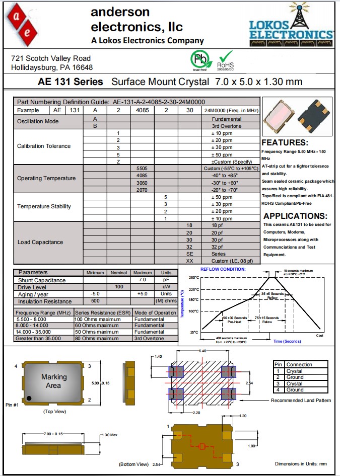 AE-131-A-2-4085-2-30-28M0000,7050mm,Anderson品牌,AE131,微處理器應(yīng)用晶振,參數(shù)表