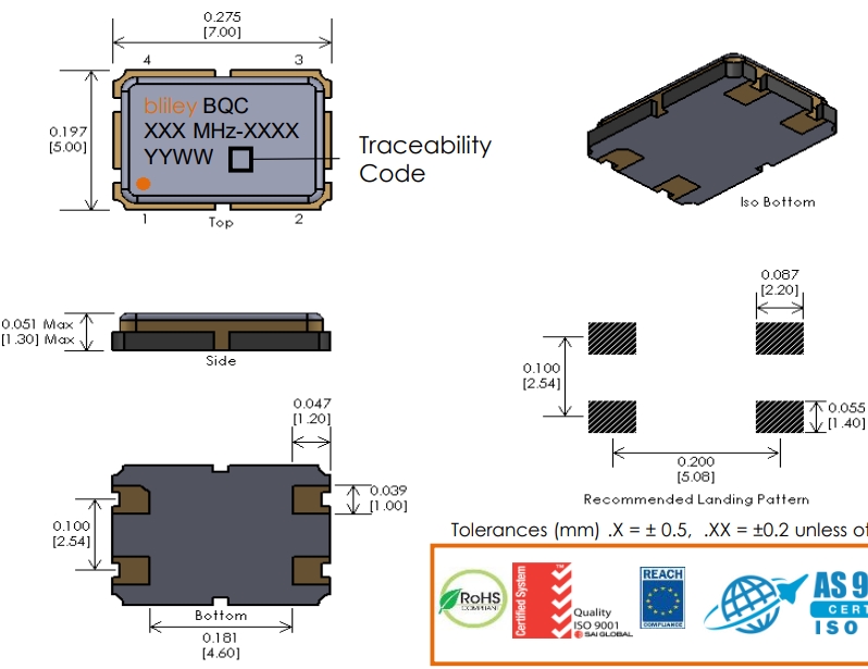 石英水晶振子產品特別適合用于6G藍牙,儀器儀表,小型設備,便攜式設備,智能音響等領域。Bliley百利晶振/BQCSA-20MF-CDGT/6G藍牙晶振.