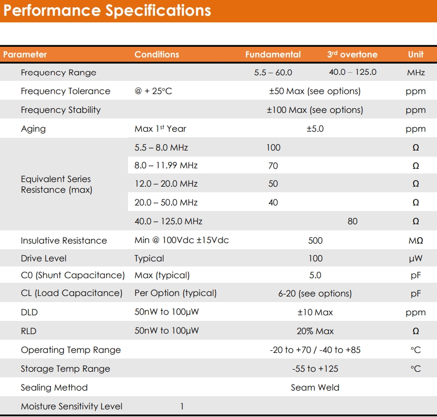 | Drive Level | Typical 100 μW | |||||||||||||||||||