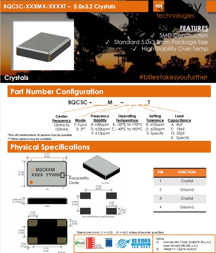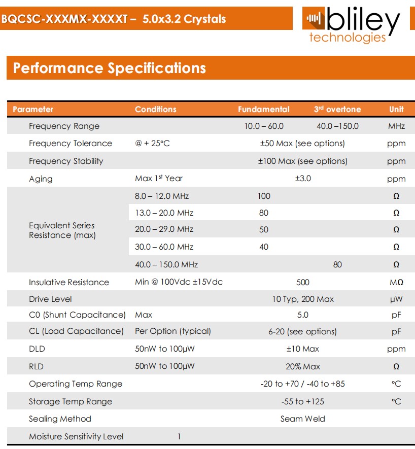 BQCSC-48MF-DCDGT,48MHz,5032mm,Bliley石英晶振,BQCSC,安防設備晶振,參數表