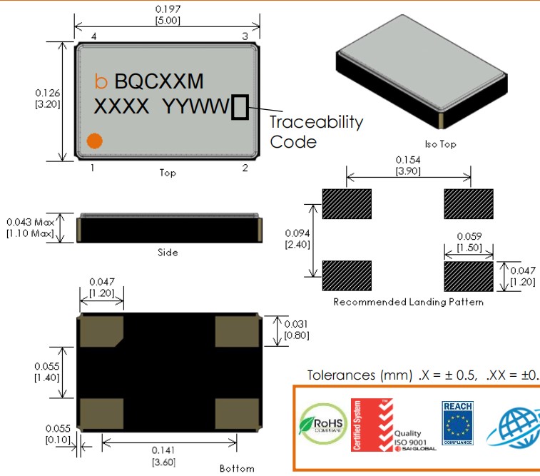 BQCSC-48MF-DCDGT,48MHz,5032mm,Bliley石英晶振,BQCSC,安防設備晶振,尺寸圖