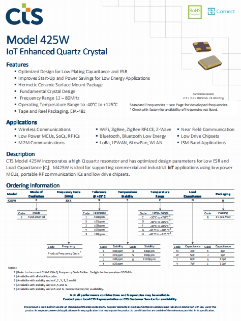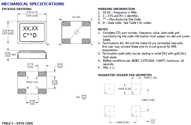 | 425F35B024M0000 | 美國CTS石英晶振 | 425 | 24MHz | 0.098" L x 0.079" W (2.50mm x 2.00mm) |