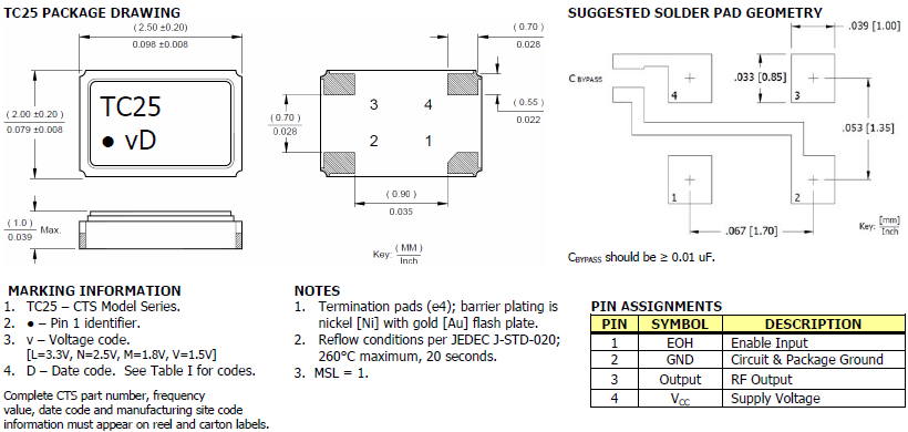 CTS晶振TC25,TC25L5C32K7680有源晶振 尺寸圖
