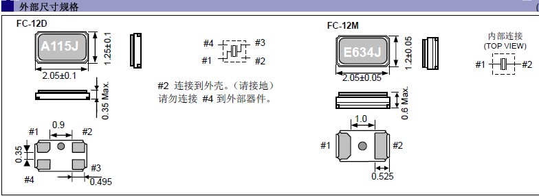 愛普生株式會社,FC-12M貼片晶振,32.768K晶體諧振器,“FC-12M 32.7680KA-AC3”頻率范圍32.768KHz,外部尺寸規格2.0×1.2×0.6mm,主要應用領域:無線通訊,高端智能手機,平板筆記本WLAN,藍牙,數碼相機,DSL和其他IT產品的晶振應用,三態功能,PC和LCDM等高端數碼領域,符合RoHS/無鉛.