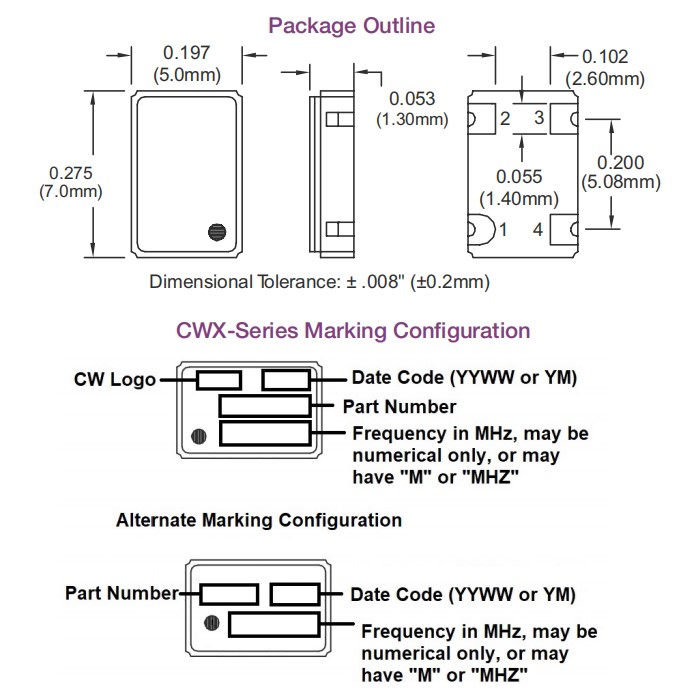 ConnorWinfield振蕩器,CWX813-012.288M,CMOS時(shí)鐘振蕩器,CWX813-001.8432M,導(dǎo)航儀6G晶振,尺寸圖