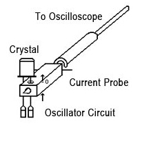 為了正確地估計(jì)所需要的驅(qū)動(dòng)級(jí),目前流入水晶需要準(zhǔn)確測(cè)量.TAITIEN使用電流探針測(cè)量實(shí)際的電流流入晶體單元來(lái)確定晶體由TAITIEN真正的駕駛水平.測(cè)量裝置見(jiàn)下圖.