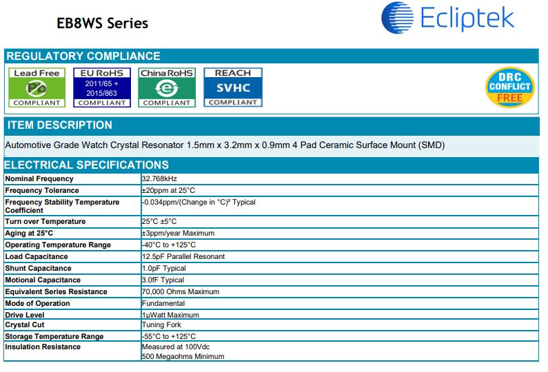 EB8WS貼片晶體,日蝕歐美晶振,EB8WSDX12-32.768K-TR晶振,ECLIPTEK晶振公司是一家專注于為我們的市場提供高質量進口晶振產品系列產品的公司。我們的目標是通過提供無與倫比的客戶服務和對客戶、員工和供應商的長期承諾,穩步發展。