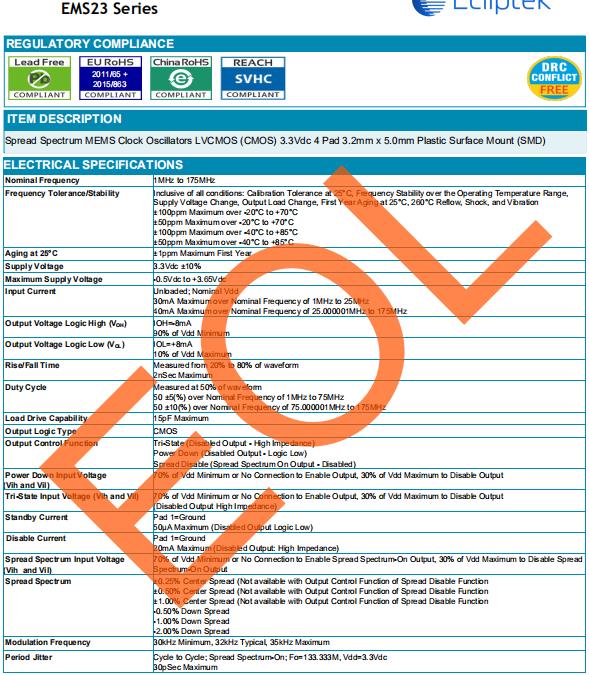 日蝕歐美晶振,EMS23有源晶體,EMS23CHA-24.000M-TR振蕩器,服務(wù)是ECLIPTEK晶振成功的基石.我們時(shí)時(shí)為客戶著想,盡力滿足并超越客戶對(duì)于我們的石英晶振,貼片晶振,電壓晶體元件,晶體振蕩器,有源晶振等產(chǎn)品的質(zhì)量要求以及服務(wù)價(jià)值.憑借先進(jìn)的設(shè)備一流的技術(shù)以及公司訓(xùn)練有素的服務(wù)團(tuán)隊(duì),多方面的滿足各領(lǐng)域客戶的不同需求,從而成為晶振行業(yè)內(nèi)的最佳資源之一.