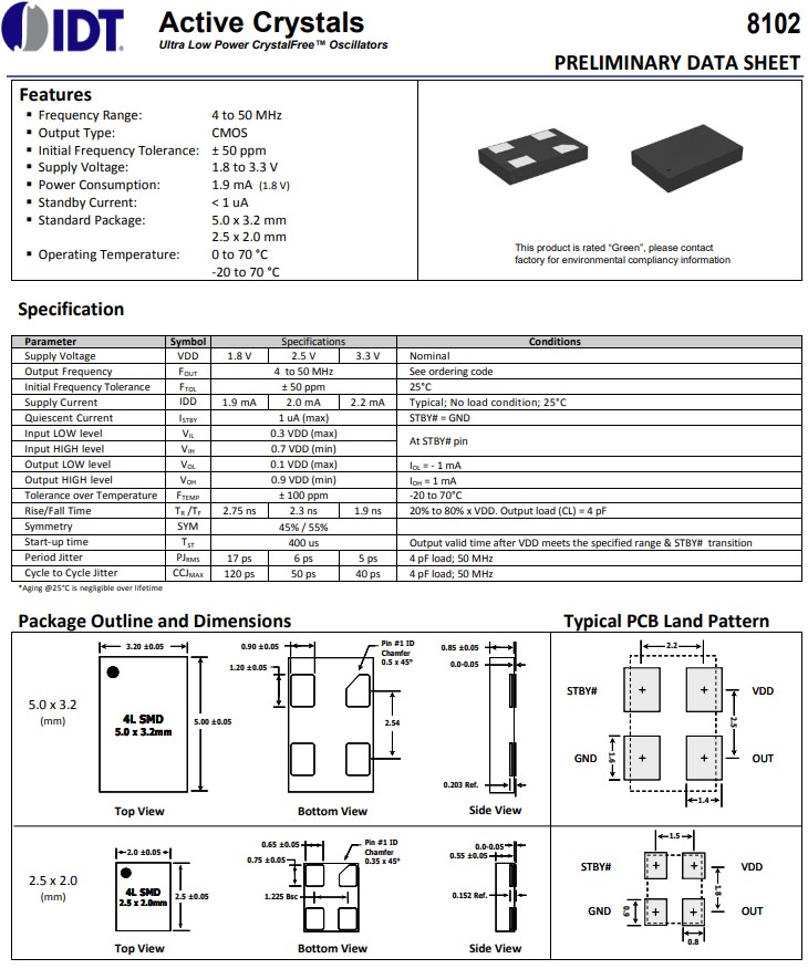 | Cycle to Cycle Jitter | CCJMAX | 120 ps | 50 ps | 40 ps | 4 pF load; 50 MHz | |||||||||||||||||||||||||||||||||||||||