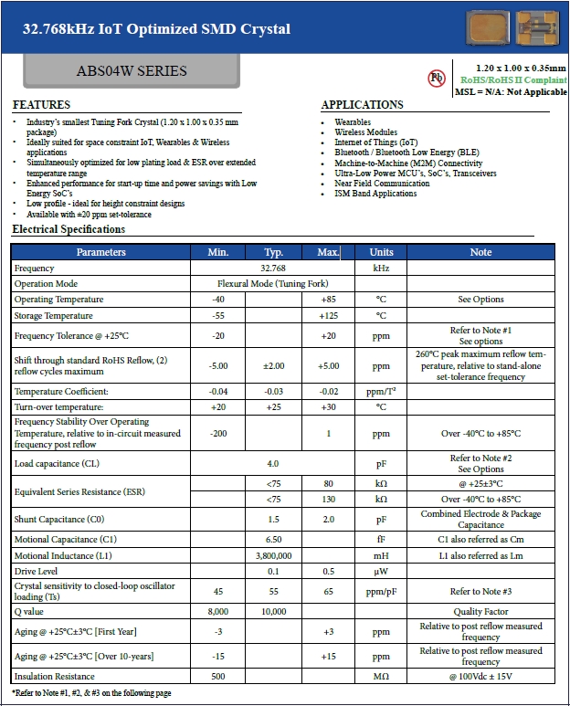 | Abracon晶振 | 單位 | ABS04W晶振 | 石英晶振基本條件 |
