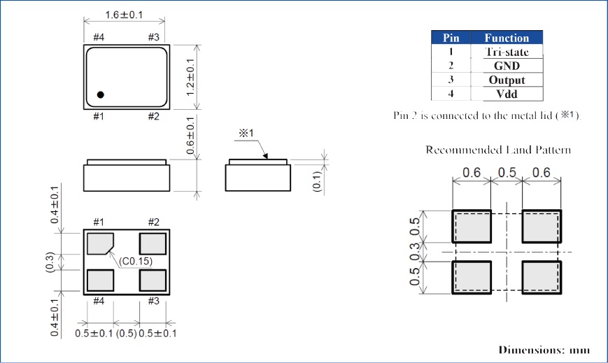 1612mm有源晶振可能會在某些條件下受到損壞.例如從桌上跌落或在貼裝過程中受到?jīng)_擊.如果產(chǎn)品已受過沖擊請勿使用.
