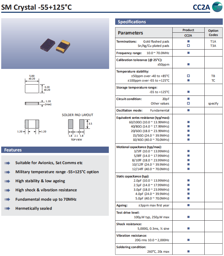 | Golledge晶振 | 單位 | CC2A晶振 | 石英晶振基本條件 |