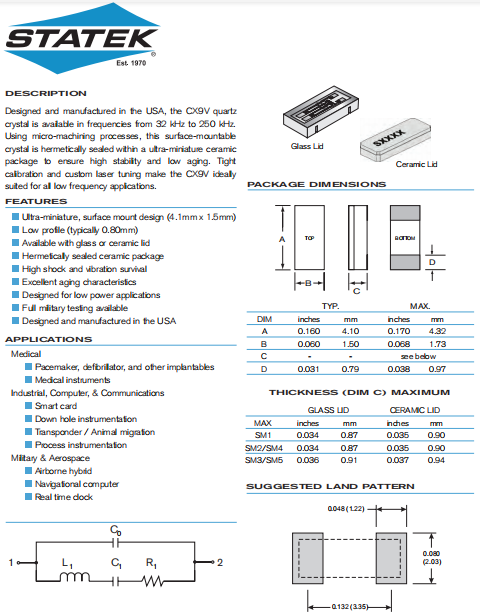 | STATEK晶振 | 單位 | CX9VSM晶振 | 石英晶振基本條件 |