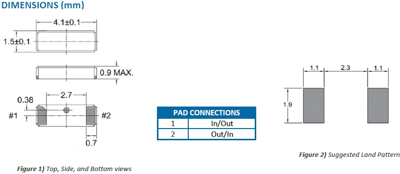 音叉晶振可能會在某些條件下受到損壞.例如從桌上跌落或在貼裝過程中受到沖擊.如果產品已受過沖擊請勿使用.