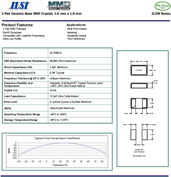 ILSI晶振,IL3W晶振,進(jìn)口音叉晶體,貼片石英晶體,體積小,焊接可采用自動貼片系統(tǒng),產(chǎn)品本身小型,表面貼片晶振,特別適用于有小型化要求的電子數(shù)碼產(chǎn)品市場領(lǐng)域,因產(chǎn)品小型,薄型優(yōu)勢,耐環(huán)境特性,包括耐高溫,耐沖擊性等,在移動通信領(lǐng)域得到了廣泛的應(yīng)用,晶振產(chǎn)品本身可發(fā)揮優(yōu)良的電氣特性,滿足無鉛焊接的高溫回流溫度曲線要求.
