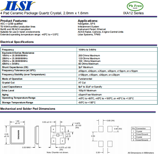 | ILSI晶振 | 單位 | IXA12晶振 | 石英晶振基本條件 |