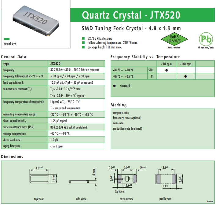 JAUCH晶振,JTX520晶振,高性能石英晶體.貼片晶振本身體積小,超薄型石英晶體諧振器,特別適用于有目前高速發(fā)展的高端電子數(shù)碼產(chǎn)品,因?yàn)榫д癖旧硇⌒突枨蟮氖袌?chǎng)領(lǐng)域,小型,薄型是對(duì)應(yīng)陶瓷諧振器(偏差大)和普通的石英晶體諧振器(偏差小)的中間領(lǐng)域的一種性價(jià)比較出色的產(chǎn)品.產(chǎn)品廣泛用于筆記本電腦,無(wú)線電話,衛(wèi)星導(dǎo)航HDD, SSD, USB, Blu-ray等用途,符合無(wú)鉛焊接的高溫回流焊曲線特性.