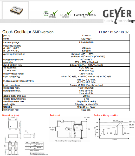 Geyer晶振,KXO-V93T晶振,高品質(zhì)振蕩器.普通貼片石英晶振外觀使用金屬材料封裝的,具有高穩(wěn)定性,高可靠性的石英晶體振蕩器,晶振外觀本身使用金屬封裝,充分的密封性能,可確保其高可靠性,采用編帶包裝,外包裝采用朔膠盤(pán),可在自動(dòng)貼片機(jī)上對(duì)應(yīng)自動(dòng)貼裝等優(yōu)勢(shì).