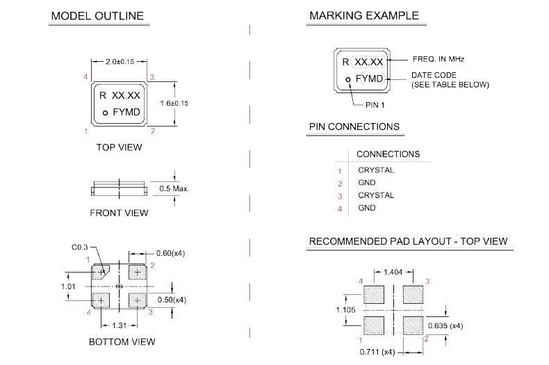| 激勵功率 | DL | 1.0μW Max. | 推薦:100μW ~ 300μW |