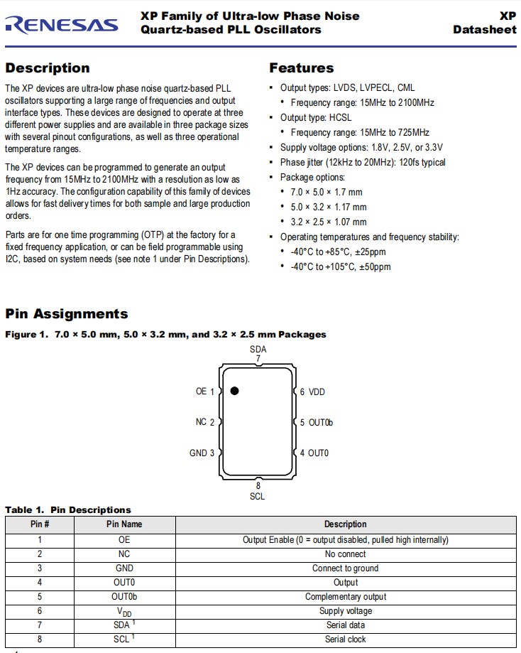| XPL726125.000000I | Renesas晶振 | XTAL OSC XO 125.0000MHZ LVDS SMD | XPL |