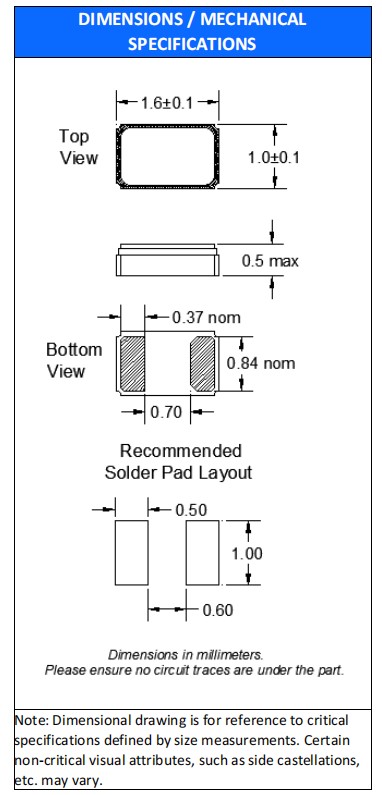 | Drive Level | 0.5µW (0.1µW Typ) |
