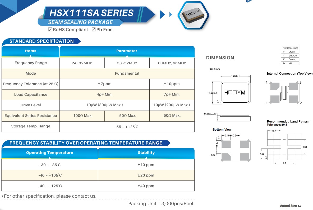 | X1C024000B81H-HV | HSX111S | H.ELE加高 | HSX111S/24MHZ/8PF/10PPM/30PPM@-4 |