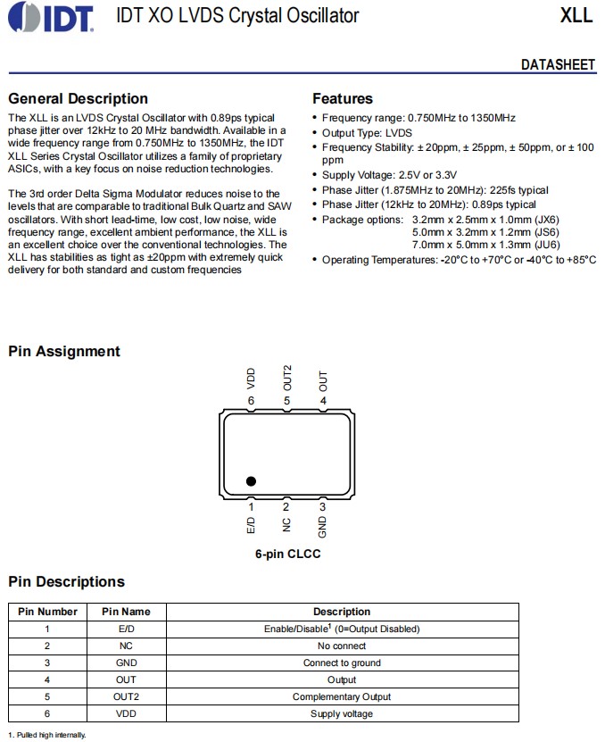 | XLL53VA00.000000X | IDT晶振 | OSC VCXO 1.000GHZ LVDS SMD | XPRESSO™ FVXO-LC53 | 1GHz |