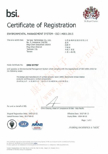 - [2020-07-10]臺(tái)系TST晶振公司ISO:14001:2015...