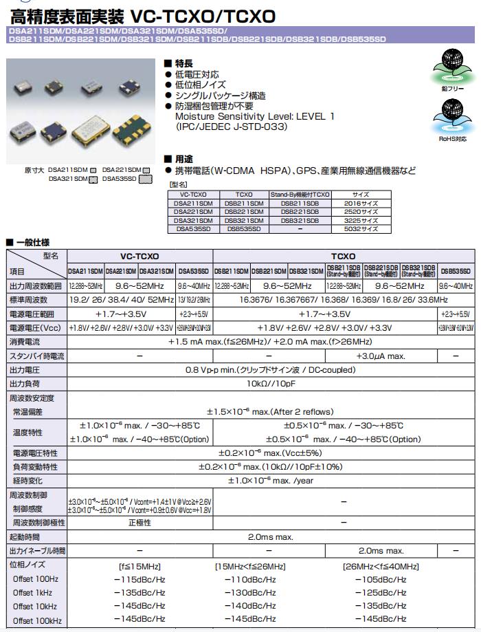 | 標準頻率 | 19.2/ 26/ 38.4/ 40/ 52MHz | 13/ 19.2/ 26MHz | |||