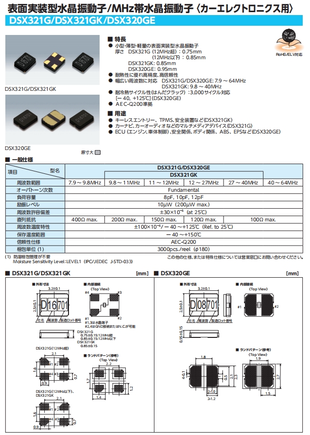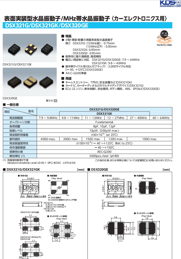 | KDS晶振 | 1N240000AB0J | DSX321G | 3225 | 40.000M | 15PF | 15PPM | 40~125度 |
