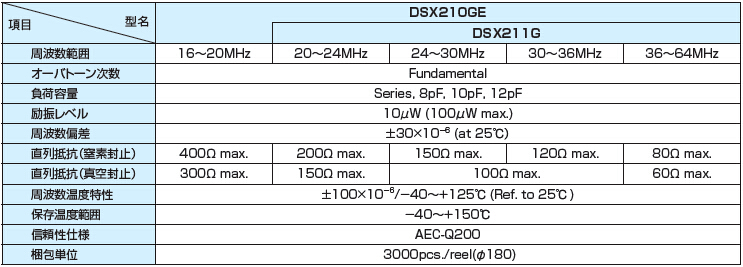 石英晶體諧振器,DSX210GE無源晶體,日本KDS晶振代理商,小型·薄型的表面貼裝型晶體諧振器、厚度 0.85mm,耐熱性卓越,高精度、高可靠性,支持從16MHz~64MHz的低頻率開始的廣泛頻率,耐冷熱循環性(焊錫裂痕):支持3,000次循環[-40~+125°C ]通過真空密封,還可以支持和合金接合密封、接縫密封產品同等的串聯電阻值,無需防濕包裝管理,Moisture Sensitivity Level:LEVEL1(IPC/JEDEC J-STD-033)依據AEC-Q200,用途:Bluetooth、無線局域網、GPS/GNSS等車載無線、多媒體設備、車載攝像頭.ECU(發動機、車體控制)、安全相關、車身相關、ABS、EPS等.