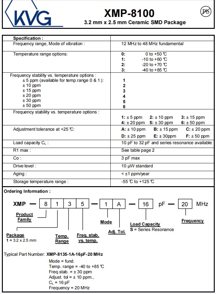 XMP-8135-4C-20pF-45MHz,3225mm,45MHz,KVG進口晶振,XMP-8100,石英晶體諧振器,參數表