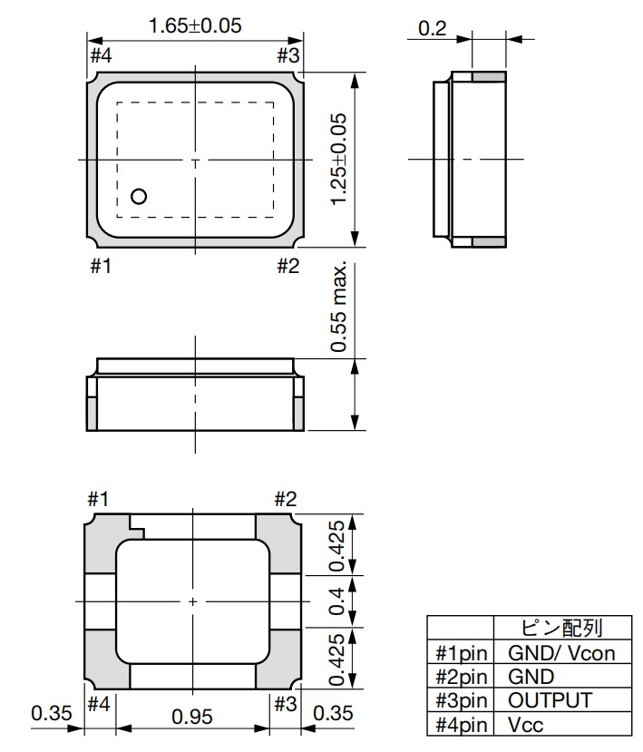 KT1612A,KT1612A52000ECW18TAA,52MHz,Kyocera低電壓晶振,SMD晶振,溫補晶體振蕩器,尺寸圖