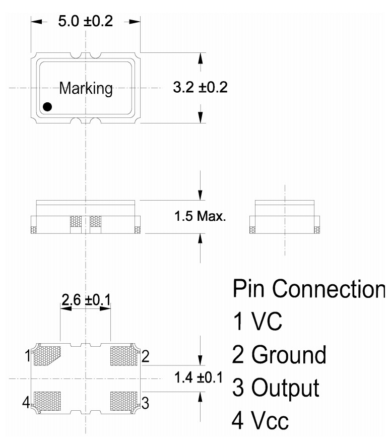 TC62-3V 19.200MHz,TCXO,5032mm,PDI溫補晶振,四腳貼片晶振,移動通訊晶振,產品特點: