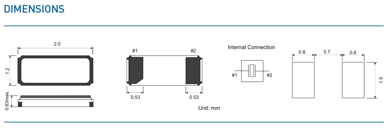 M2012-32.768kHz-±20ppm-12.5pF,2012mm,PETERMANN諧振器,M2012,移動通訊晶振,尺寸圖