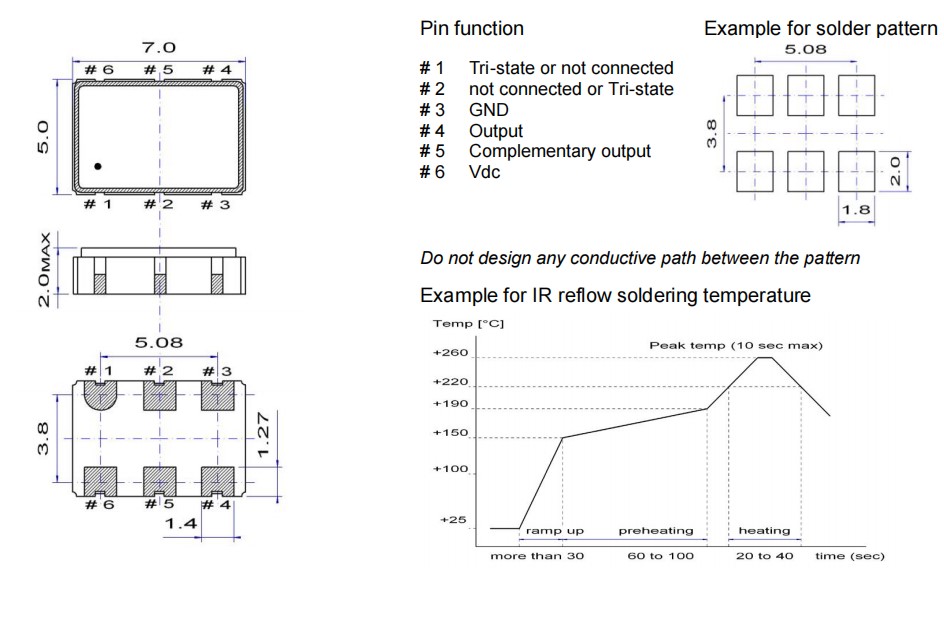 QuartzCom時鐘振蕩器,MCO-1S-DS-6p差分晶振,低抖動6G晶振,有源晶振,LVDS貼片晶振,尺寸圖