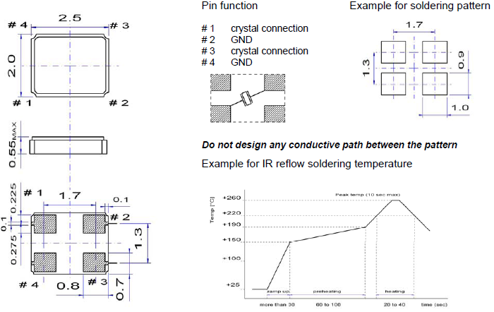 | Frequency tolerance | ±10 ~ ±50 ppm @ +25 °C |