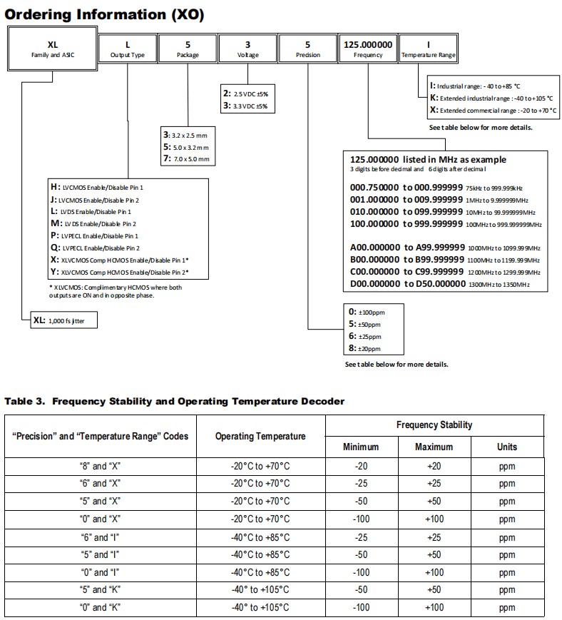 頻率穩定性選項:±25、±50或±100ppm(僅限XO)