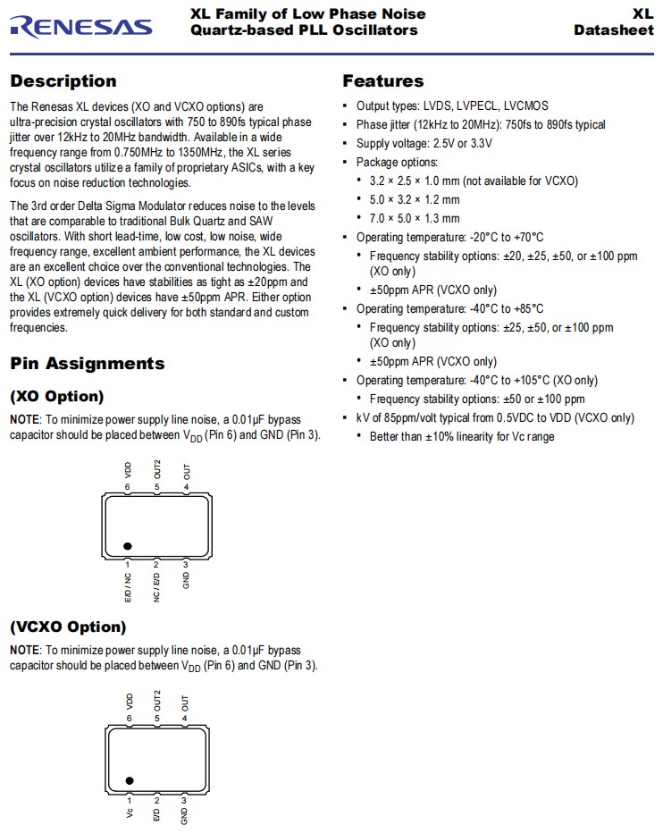 | XLX730100.000000K | Renesas晶振 | XTAL OSC XO 100.0000MHZ HCMOS | XLX | 100 MHz | HCMOS |