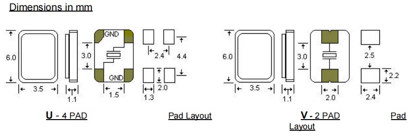 AAU20M000000FLH18H,6035mm,STD石英貼片晶振,20MHz,無源晶振,數(shù)碼電子晶振,尺寸圖