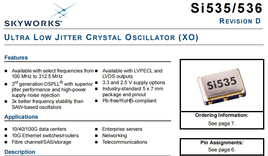 | 536FC159M375DG | Skyworks有源晶振 | XTAL OSC XO 159.3750MHZ LVDS SMD | Si536 | 159.375 MHz | LVDS |