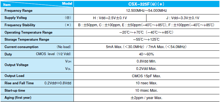 CSX-325F石英晶體振蕩器,西鐵城有源晶振,“CSX325FJC12.500M-UT”工業級產品晶振,廣泛的輸出頻率鎖相環技術,快速樣品交付質量和短的交貨時間生產,允許輸出低電流消耗,函數(OE)或站在函數(備用).適合各種應用程序通訊設備、AV設備和測量儀器.