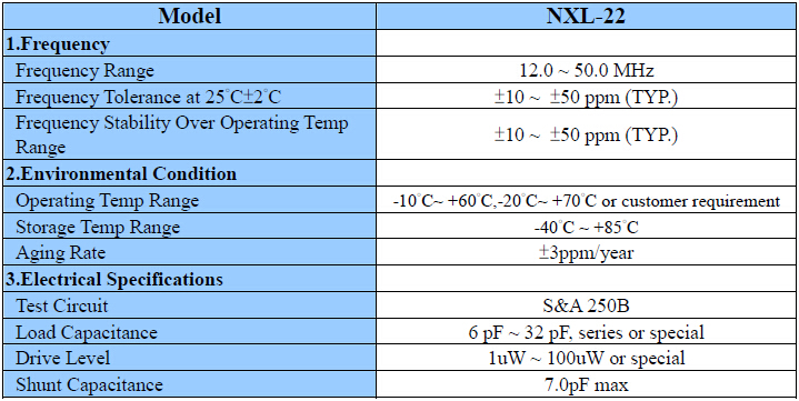 NXL-22石英晶體諧振器,2520mm貼片晶振,臺灣NSK晶振,尺寸大小2.5*2.0*0.6mm,頻率操作范圍12.0 to 50.0MHZ,工作溫度-20~+70℃耐高溫環境,縫焊優良的可焊性,自動和完美的包裝,由于浮雕錄制優秀的抗振性和耐沖擊性,通過無鉛認證.