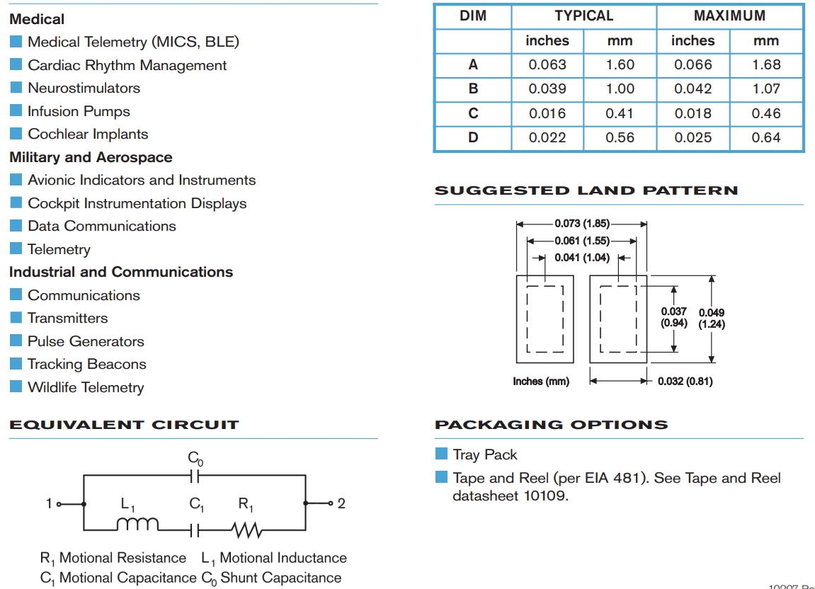 | Drive Level | 100 µW MAX | ||||||||||||||||||||