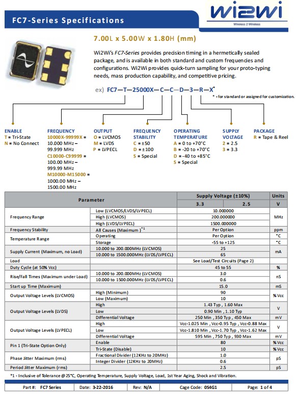 Wi2wi時鐘振蕩器,FC7-T-28000X-M-C-D-3-R-X,差分晶振,參數表