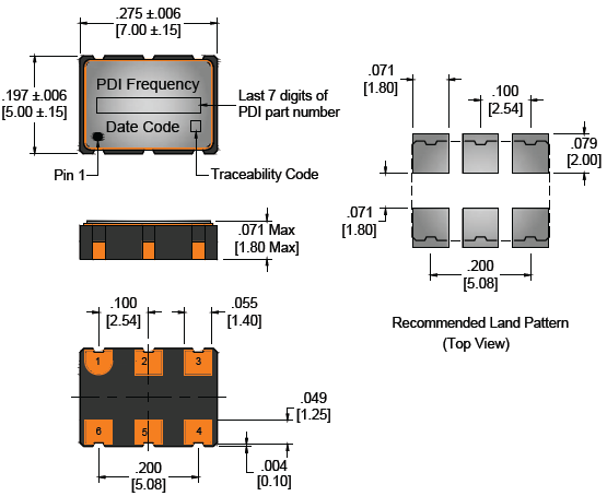 Wi2wi高性能晶振,PE7-T-C12000-M-C-D-3-R-X,低相位噪聲晶振,尺寸圖