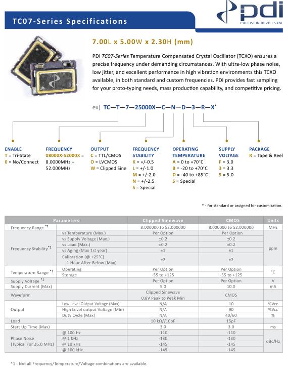 宣布新型TCH系列堅固耐用且同類最佳的溫補晶振(TCXO)。TC6系列溫補晶振進一步擴展了wi2wi的頻率控制SMD晶振和定時設備產品組合,以滿足航空電子,太空和軍事市場最苛刻的技術要求。公司已收到TCH系列的首批生產訂單,從大型供應商到航空電子設備和國防市場。“董事會主席Michael Sonnenreich表示。