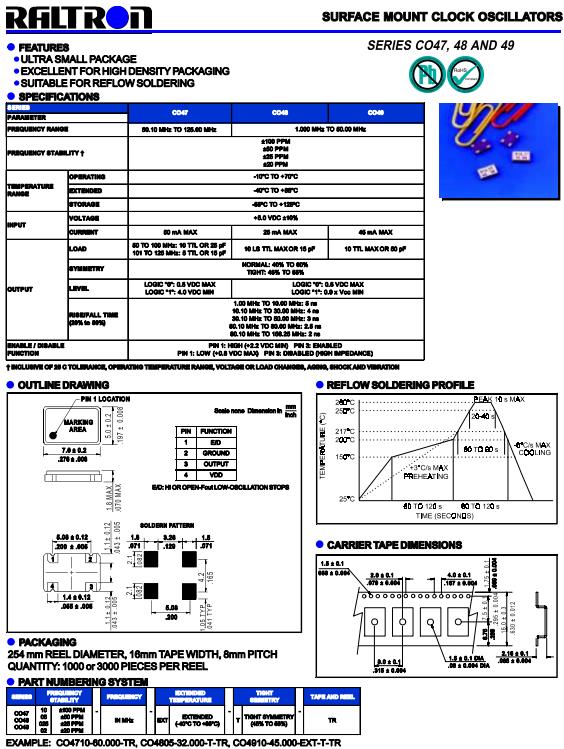 | CO4 Series 50 MHz 3.3 V ±100 ppm -40°C TO +85°C SMT CMOS Clock Oscillator | ||||||